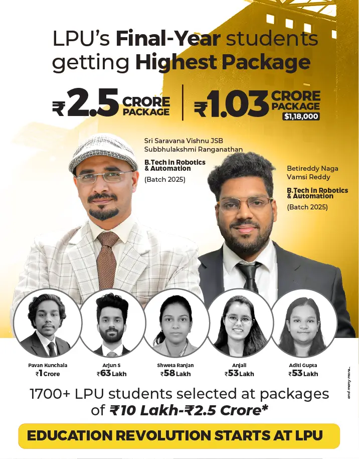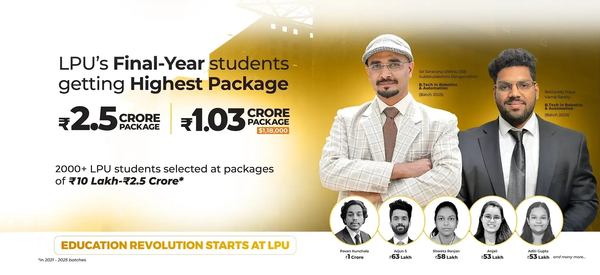 LPU offers top placements with packages of up to ₹3 Crore, featuring recruiters like Google, Amazon, Microsoft, and Adobe, along with career-focused training.