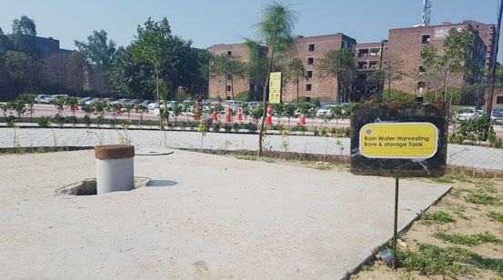 LPU has implemented a comprehensive approach to rainwater harvesting, effectively conserving water resources across the campus. A robust pipeline network captures rainwater from surface runoff, including collection from terraces, and channels it to recharge wells. The campus roads are designed with saucer drain sections to facilitate the collection of rainwater from both the road network and paved walkways. Additionally, the university has established 39 rainwater harvesting bores, or reverse bores, which help replenish the groundwater table—evidenced by a rise of approximately 6 feet as monitored by a piezometer. Efficient watering of plants is enhanced by strategically placed water sprinklers. The rainwater harvesting system also captures runoff from residential building rooftops, directing it through pipelines into recharge wells.