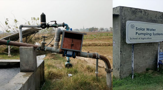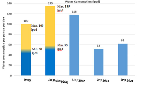 University utilizes groundwater extraction through bore wells while ensuring that rainwater recharge structures are in place to replenish groundwater levels during rainfall. The university has Government approval to abstract 4600 cubic metres of water consumption per day which is sufficient for a campus population of more than 50000, however the water use is judicious and is not used till its highest level. These bores are well certified by Department of Water resources,”Punjab Water Regulation and Development Authority”. University has 32 drinking water bores and shallow bores through which fresh water extracted and is made available to all at zero cost at various locations of campus with energy saving solar water pumps to run the water pumping system in the campus. Additionally, LPU explores advanced methods such as desalination, wastewater treatment, and membrane-based technologies for water purification and reuse. Solar energy is also harnessed for water purification and extraction, further reducing the carbon footprint and enhancing sustainability efforts. These initiatives underscore LPU's commitment to fostering environmentally responsible practices that ensure water sustainability for future generations.