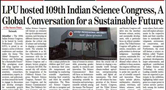 The 109th Indian Science Congress at Lovely Professional University (LPU) gathered top scientists and Nobel laureates to promote sustainable development, supporting government goals in clean energy and efficient technology. The event showcased innovative research through expert presentations, fostering collaborations among academia, industry, and government for scalable clean energy solutions. The Conference offered actionable recommendations for energy-efficient policies and highlighted strategies for climate resilience. It also raised public awareness of sustainable practices, driving policy and societal support for clean energy initiatives. This pivotal gathering aimed to advance India’s environmental and energy objectives.