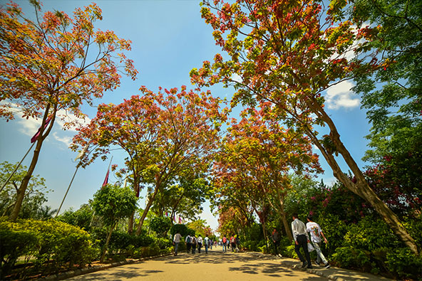 A lush green campus boasting over 26,500 trees spanning hundreds of varieties.