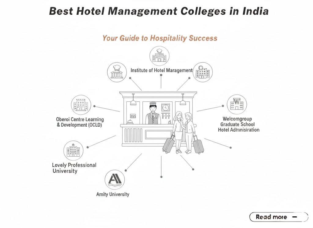 Best Hotel Management Colleges in India include Lovely Professional University (LPU) at the forefront, along with top government institutes such as IHM Delhi, IHM Mumbai, IHM Bangalore, and IHM Chennai, and leading private institutes like Oberoi Centre of Learning & Development, Welcomgroup Graduate School of Hotel Administration, Symbiosis Institute of Hotel Management, Christ University, and Amity University, all known for quality education and strong placement outcomes.