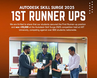 Our students emerged as 1st Runner-ups at the Autodesk Skill Surge 2025, competing against 800+ participants nationwide and winning a cash prize of ₹20,000 A big salute to their innovation, dedication, and hard work under Edu-Revolution.