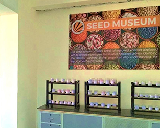 The seed museum contains seeds of improved varieties displayed with its desirable attributes. This museum helps not only for identifying the different varieties of the crops but also understanding the importance of quality seeds. Approximately 100 gm of seeds of released varieties of cereals, millets, pulses, oilseeds and fibre crops have been collected and displayed in seed museum.