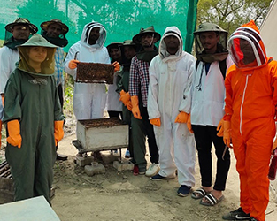 Apart from honey production, the bees also play a vital role in pollination of numerous fruits and vegetables thus contributing towards enhancement of yield. The students get hands-on various aspects of honeybee management i.e. establishment of honeybee colonies, bee hive management, honey collection and extraction, processing and marketing of honey.
