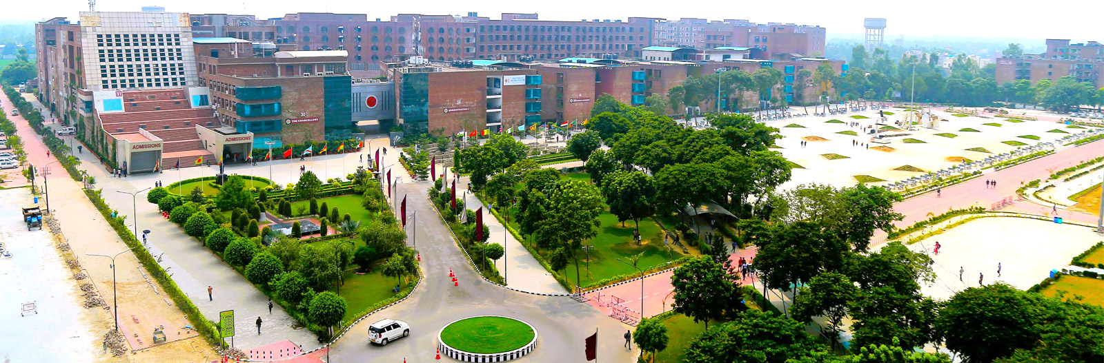 Lovely Professional University is committed to creating a secure and sustainable campus environment, aligning with SDG 11 through innovative architectural design. The campus features designated multilevel parking, pedestrian pathways, and crosswalks, significantly reducing vehicular hazards.