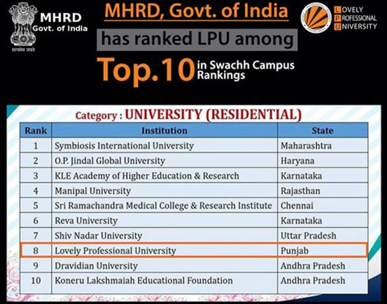 LPU has constructed buildings adhering to rigorous environmental standards, earning the distinction of being the first campus in India to receive a five-star rating from the Green Rating. The university has been honored with the Government of India’s Green Champion Award and recognized as ‘One District, One Green Champion’ by the Mahatma Gandhi National Council of Rural Education (MGNCRE)