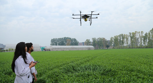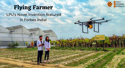 The "Flying Farmer," part of a live project at Lovely Professional University, was developed by 45 students and 5 faculty members to revolutionize pesticide treatment for farmers. This wireless, sensor-equipped drone enables farmers to detect weeds, assess pesticide needs, and perform yield and biomass mapping. It also measures soil nutrient content, reducing crop loss and boosting productivity. The drone can target specific areas for pesticide spraying, preserving up to 85% of pesticide use. With a 25-minute airtime, machine vision algorithms, and infrared sensors, it accurately identifies weed locations and promptly alerts farmers. Moreover, Forbes India featured this innovative project in their "Innovations Built to Help Farmers" coverage.