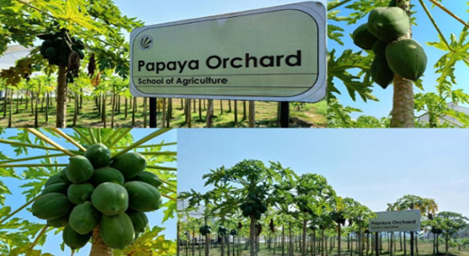 Fruit Orchard:The area of 40 acres in the university has been developed as orchard where fruits of various climatic zones have been grown. The Fruit Orchard at Lovely Professional University (LPU) serves as a vibrant hub for sustainable agriculture and biodiversity. This initiative showcases a diverse range of fruit-bearing trees, providing students with hands-on experience in horticulture and sustainable farming practices. The orchard not only enhances the campus's green landscape but also promotes environmental awareness and healthy eating habits among the university community. By cultivating various fruits, the orchard plays a crucial role in research, education, and contributing to local food production, fostering a deeper connection between students and the environment.