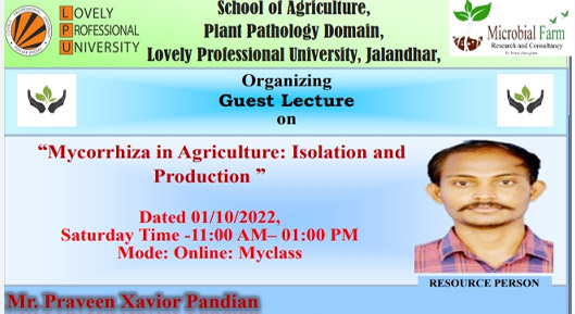 9 Guest Lecture on Mycorrhizae in Agriculture: Isolation and Production