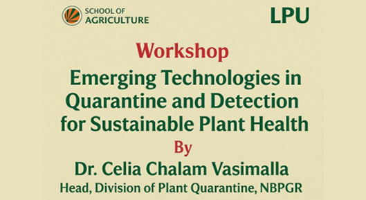 On 25 November 2024, the School of Agriculture at Lovely Professional University conducted an online workshop via Google Meet on “Emerging Technologies in Quarantine and Detection for Sustainable Plant Health,” attracting 37 participants. Led by Dr. Celia Chalam Vasimalla, Head of the Division of Plant Quarantine at NBPGR, the workshop addressed threats from plant pests, pathogens, and invasive species to global food security and biodiversity. It explored cutting-edge tools and methodologies for rapid detection, accurate diagnosis, and effective quarantine measures, aligning with SDG 15: Life on Land to promote sustain- able plant health practices and enhance agricultural resilience.