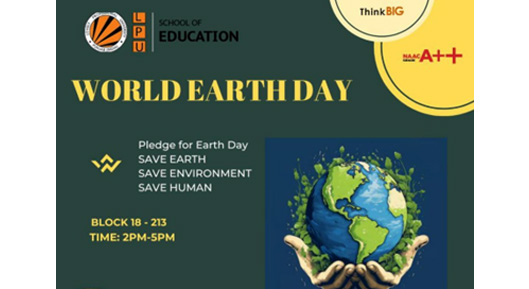On 22 April 2024, the School of Education at Lovely Professional University celebrated World Earth Day at LPU. The initiative focused on raising awareness about environmental conservation, aligning with SDG 4 (Quality Education), SDG 13 (Climate Action), SDG 14 (Life Below Water), and SDG 15 (Life on Land). Students launched a pledge campaign to save the Earth, environment, and humanity, preparing posters with space for signatures. They visited various campus schools, including Computer Science, Management, Law, Creative and Liberal Arts, Journalism, and Social Sciences, to engage faculty and students in conversations and collect signatures, inspiring collective action for environmental sustainability.
