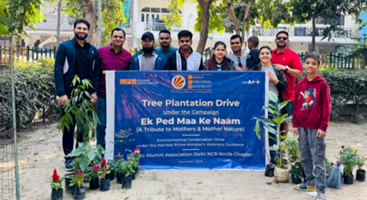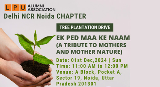 On 1 December 2024, the Division of Alumni Relations, in collaboration with the LPU Alumni Association Delhi NCR Noida Chapter, organized a Tree Plantation Drive titled “Ek Ped Maa Ke Naam” at A Block, Pocket A, Sector 19, Noida, Uttar Pradesh, with 29 participants. The event honored the nurturing essence of mothers and Mother Nature through tree planting, aiming to increase green cover, support biodiversity, and encourage sustainable environmental practices through alumni collaboration.
