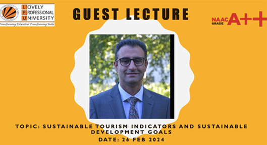 On 26 February 2024, the School of Hotel Management and Tourism at Lovely Professional University organized a guest lecture on “Sustainable Tourism Indicators and Sustainable Development Goals,” attended by 80 participants. Delivered by Siamak Seyfi, Assistant Professor from the University of Oulu, Finland, the lecture explored the interplay between sustainable tourism indicators and SDGs, such as poverty alleviation, environmental stewardship, and cultural preservation. Through vibrant discussions, it inspired students to appreciate sustainable tourism’s role in shaping a resilient and equitable global future.