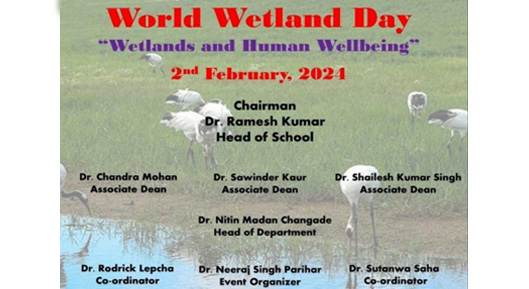 On 2 February 2024, the School of Agriculture organized an Awareness Rally on World Wetland Day at Block 57A-502, engaging 78 participants. Led by Dr. Neeraj Singh Parihar, Assistant Professor at LPU, the event aimed to raise awareness about the ecological significance of wetlands and their sustainable use. Through activity-based engagement, a rally, and poster presentations, it educated and inspired participants to contribute to wetland preservation and generated ideas for their conservation, promoting biodiversity and sustainable ecosystem management.