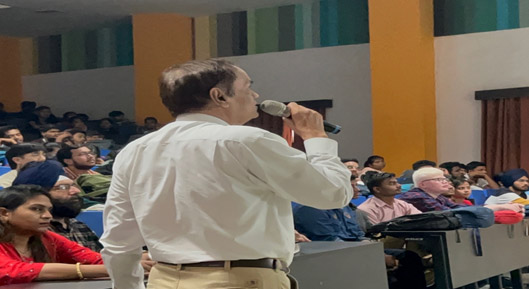 On 4th November 2022, the Department of Horticulture, School of Agriculture, organized an offline guest lecture on "Agroforestry Strategies in Northern India with Special Reference to Punjab" for first-year B.Sc. (Hons.) Agriculture students. The lecture was conducted in room 57A:502 and saw the participation of 736 students. Dr. K.S. Bangarwa, an Ex-Emeritus Professor and former Head of the Department of Forestry at CCS Haryana Agricultural University, Hisar, was the resource person. During the session, Dr. Bangarwa shared his extensive knowledge and expertise on various aspects of forestry and agroforestry, focusing on species that are particularly suitable for Punjab. His talk provided valuable insights into agroforestry strategies that can be effectively implemented in Northern India, helping students understand the importance of integrating trees into agricultural systems for improved sustainability and productivity. The lecture formed part of the course "Introduction to Forestry (HRT 141)," offering students an in-depth understanding of agroforestry practices crucial to the region.