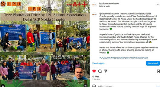 | 6 | Tree Plantation Drive - LPU Alumni Association Delhi NCR Noida Chapter - Ek Ped Maa Ke Naam |