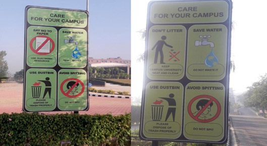 1. Signs promoting water conservation across campus