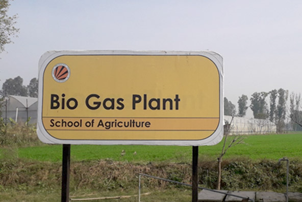 A biogas plant based on ‘Deenbandhu model’ is constructed to produce biogas from cattle dung. To reduce greenhouse gas emissions and the risk of pollution to waterways, organic waste can be removed and used to produce biogas, a renewable source of energy. Biogas contains roughly 50- 70% methane, 30-40% carbon dioxide, and trace amounts of other gases. The University currently has 3 cubic meter operating biogas systems across the campus to process kitchen waste. Apart from the cattle dung, sewer waste is also fed into the plant to produce biogas.